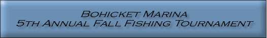 Day Saturday - October 25, 2003 8:00 to 4:00 pm weigh-in 4:00 pm to 5:30 pm Awards after the weigh-in at "Fischer's" Elgible Species Trout Flounder Sheepshead Awards prizes for each species: 1st Place 2nd Place 3rd Place |