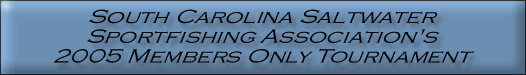 Day Saturday - May 28, 2005 lines in at 7:30 am lines out at 3:30 pm Weigh-in All fish must be delivered to weigh-in by boat. Charleston City Marina Fuel Dock or Bohicket Marina 5:00 pm to 7:00 pm Eligible Species Blue Marlin White Marlin Sailfish Wahoo Dolphin King Mackerel Tuna Category: Bluefin, Blackfin, Yellowfin, Big Eye Awards Awards for the 1st, 2nd, and 3rd place fish in each species (4th place fish receives points) Outstanding Boat Outstanding Male Outstanding Female Outstanding Youth (Plaques and Points) Youth Participation Awards Hard Luck Drawing for a boat that doesn't have a qualifiying fish for one of the above awards (must be present at the Awards Ceremony) New this year: Aggregate Award Target Species Bonus Points species to be announced at the Capt's. Meeting TWT $75.00 per category Aggregate, Tuna, Dolphin, Wahoo, King Mackerel 100% pay out 1st - 60% 2nd - 30% 3rd - 10% |