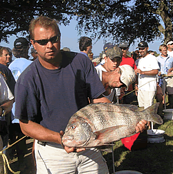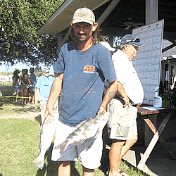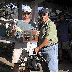 Jim McNay 2nd Place - Blackfish Left - Jim's fish posing with Doug Hoover Right - Jim receiving his award |