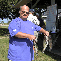 Barrineau 1st Place - Spanish Mackerel I guess Jenny was camera shy, but here is her husband with her fish. |