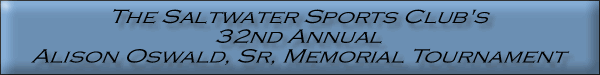 and Captain's Meeting James Island Yacht Club 734 Wampler Drive James Island, SC Wednesday - August 20, 2008 Registration - 6:30 - 8:00 pm Captain's Meeting - 8:00 pm Registration Fee Adults - $35.00 Youth - $15.00 (Youth is under 16 years old) Includes: T-shirt, Beer, Door Prizes, and Snacks Tournament Date Saturday - August 23, 2008 Fishing begins at 12:01 am Weigh-in 4:00 to 5:30 pm at the James Island Yacht Club Awards Ceremony following the weigh-in Contact Information Jim Swittenberg - (843) 762-6049 Dee Oliver - (843) 573-3474 Early Entries May Be Mailed To: The Saltwater Sports Club P.O. Box 12852 Charleston, SC 29422 |