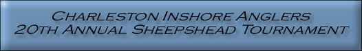 Day Saturday - April 28, 2012 6:00 am to 5:00 pm Weigh-in King Street Grille 4:00 pm to 5:00 pm Prizes 1st Place - $1,000.00 2nd Place - $500.00 3rd Place - $200.00 4th Place - $125.00 5th Place - $75.00 6th - 10th Place - $50.00 - based on 140 anglers at 80% payback - 20% will be donated to local charity - prize money will increase or decrease based on the number of anglers - Minus $10.00 each entry for tournament expenses Bonus Prize Largest Dogfish - $50.00 Youth Prizes (under 16) 1st, 2nd, and 3rd place prizes |