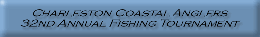 Meeting and Registration James Island Yacht Club 734 Wampler Drive James Island, SC Thursday - July 16, 2015 6:30 pm to 8:00 pm Door prizes and refreshments provided at the Captain's Meeting Entry Fee $40.00 per adult $20.00 per youth (15 years and younger) Includes a tournament t-shirt Tournament Day Saturday - July 18, 2015 (fishing from 12:01 am to 5:30 pm) Weigh-in 4:00 to 5:30 pm James Island Yacht Club Awards Ceremony Saturday - July 18, 2015 Following the weigh-in Late Registration Friday - July 17, 2015 Until 6:00 pm at: Charleston Angler West Ashley and Mt. Pleasant Haddrell's Point West Ashley and Mt. Pleasant Contact Information Lee Moyer at (843) 795-5136 Joey Mock at (843) 345-7524 The Charleston Coastal Anglers currently supports The American Cancer Society: The Hope Lodge, James Island Elementary Fishing Rodeo, Fisher House, Cancer Society: Dragon Boat Race and the Trident Fishing Tournament |