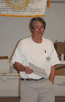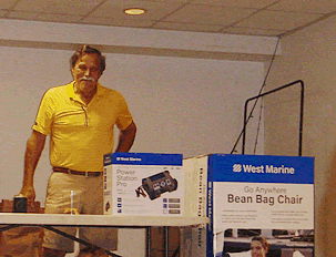 Bobby Watkins - Tournament Director - Going over the tournament rules and David showing off the Live Auction prizes. |