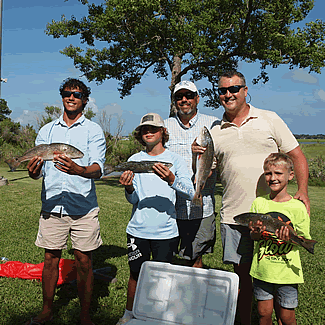 Place Redfish - 3.74 Kellie Fox (right) Russell Simmons (left) and David Fox (Middle) |